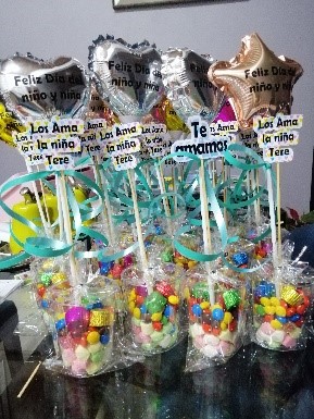 Somos una mini empresa que se dedica a la confección de diferentes manualidades: Decoración de cuadernos, folder, ampos, murales, letras decoradas, cajitas de confites en cartón, chip bag, arreglos de chocolates, para cumpleaños, días especiales (día de la madre, día del padre). Chocolates personalizados, palomitas personalizadas, ramos de chocolates, jarras personalizadas en vinil adhesivo, platones para dedicatorias (vinil), esferas navideñas personalizadas, entre otros.