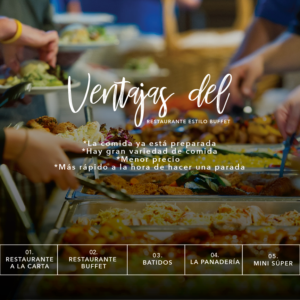 Restaurante el Gran Parqueo le ofrece 5 servicios: Restaurante Buffet, Restaurante a la carta, Minisuper, Batidos y Panadería, es un restaurante ideal para ir en familia y es muy visitado por personas que viajan debido a la cantidad de servicios que ofrece.