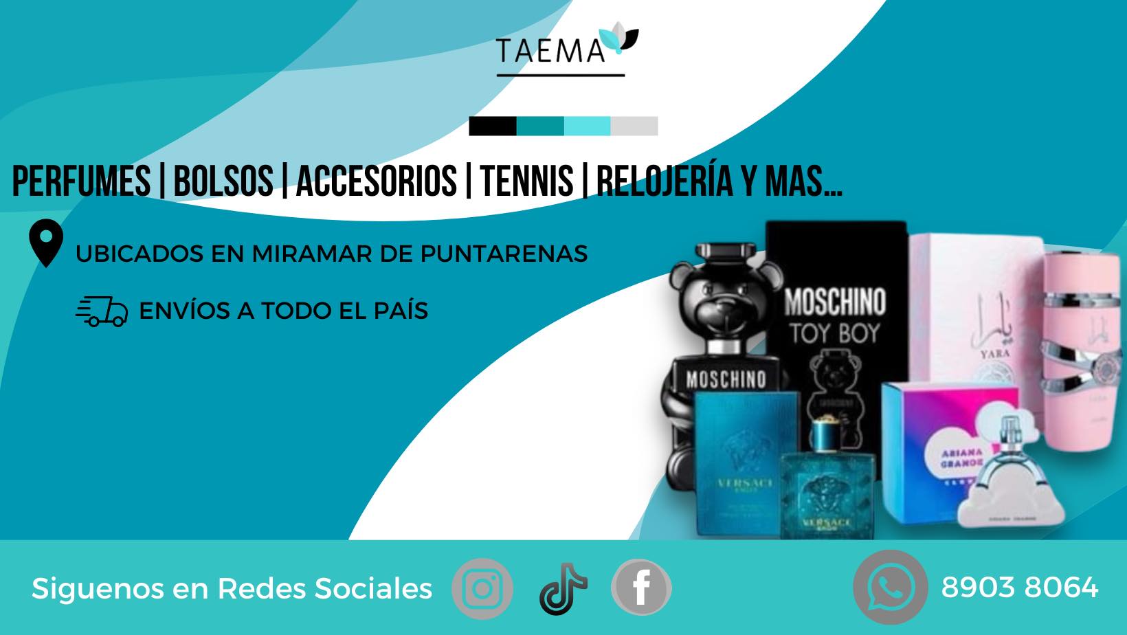 Taema Perfumes | Accesorios Únicos es una marca dedicada a resaltar la elegancia y el estilo personal, ofreciendo fragancias exclusivas y accesorios especiales que marcan la diferencia. Su propuesta combina distinción, autenticidad y buen gusto para quienes buscan destacar con un toque único.